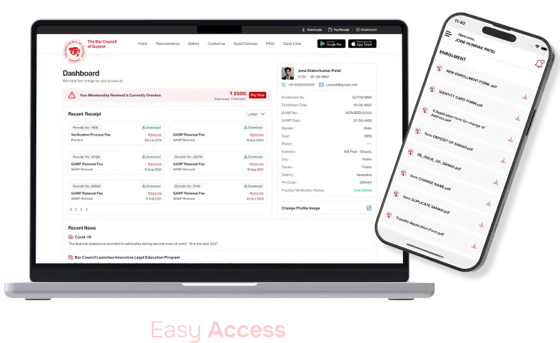 The digital platforms of the Bar Council of Gujarat are designed to be user-friendly and accessible, ensuring that all members can easily navigate and utilize the services offered. The modern and intuitive design reflects the council's commitment to innovation and efficiency.